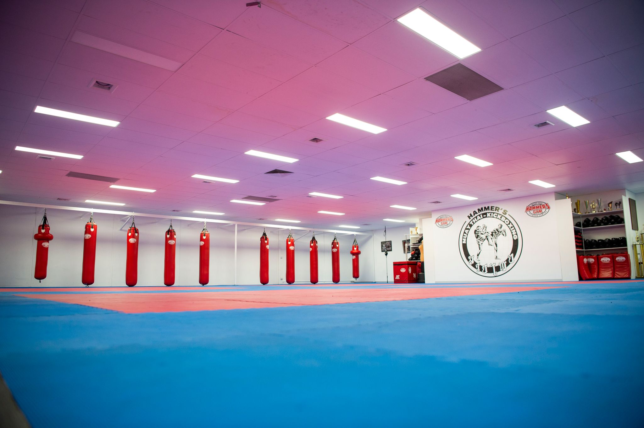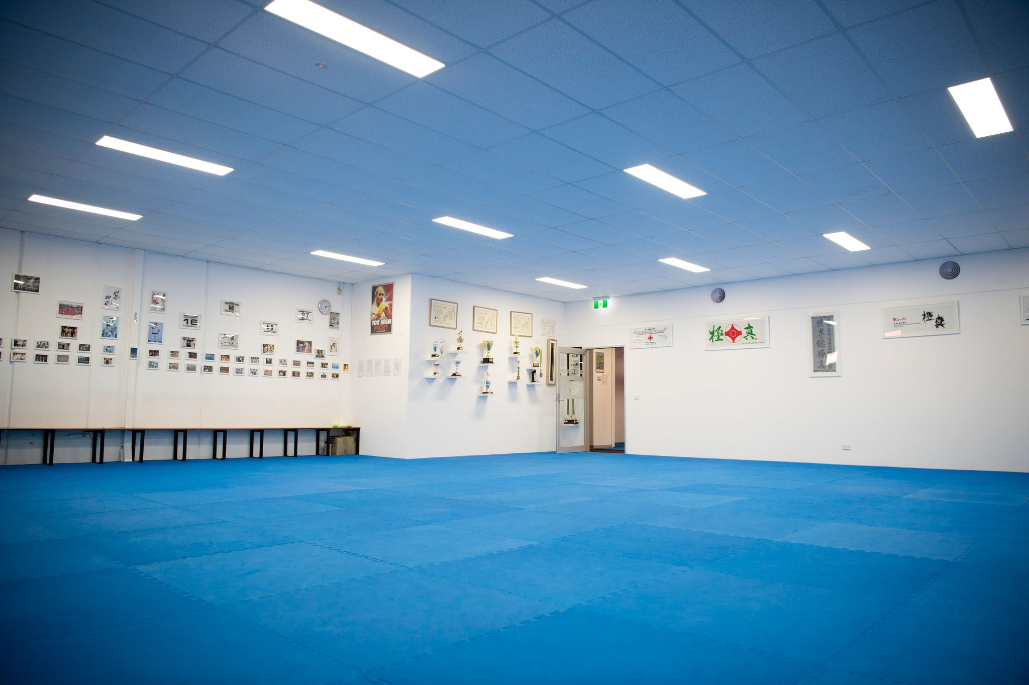 Dojo for kids and adult classes. Large matted space with plenty of karate based training equipment.