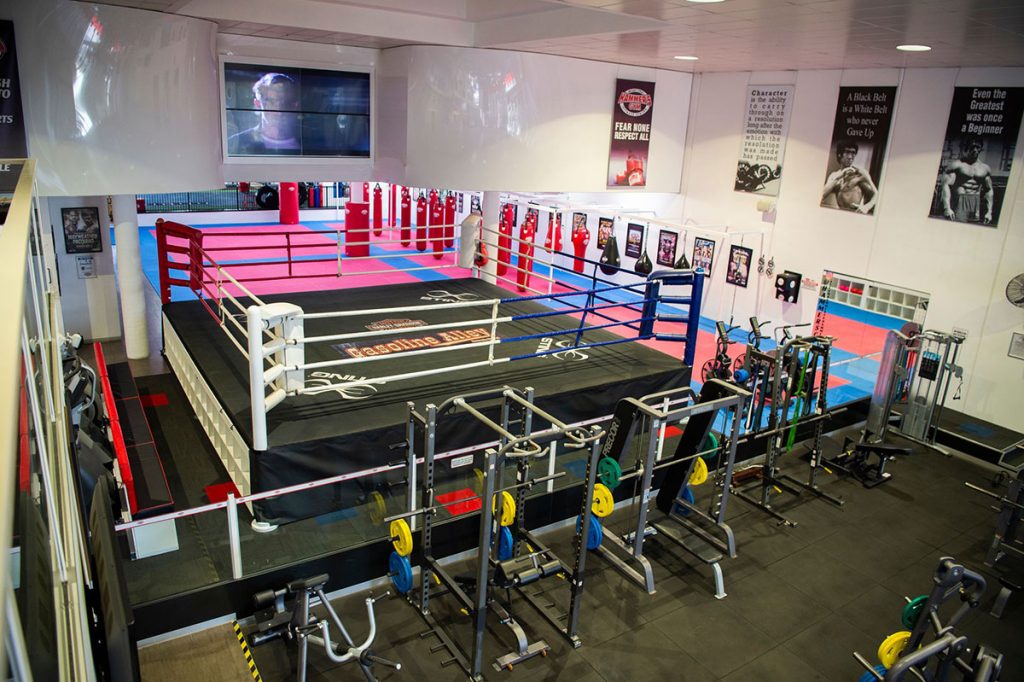 Spacious matted boxing area equipped with over 20 boxing bags plus a speedball, floor to ceiling and wall mounted target bag.