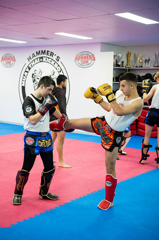 Learn the Martial Art of Muay Thai in a safe and friendly environment with our world class instructors A reality based Martial Art, Muay Thai Kickboxing classes at Hammer’s Gym utilise all eight weapons of the body such as; fists, feet, knees and elbows.
