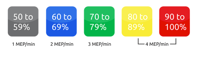 Myzone Effort Points (MEPs) are awarded throughout your workout and are intermittently increased the harder you push yourself, as seen in the image below.